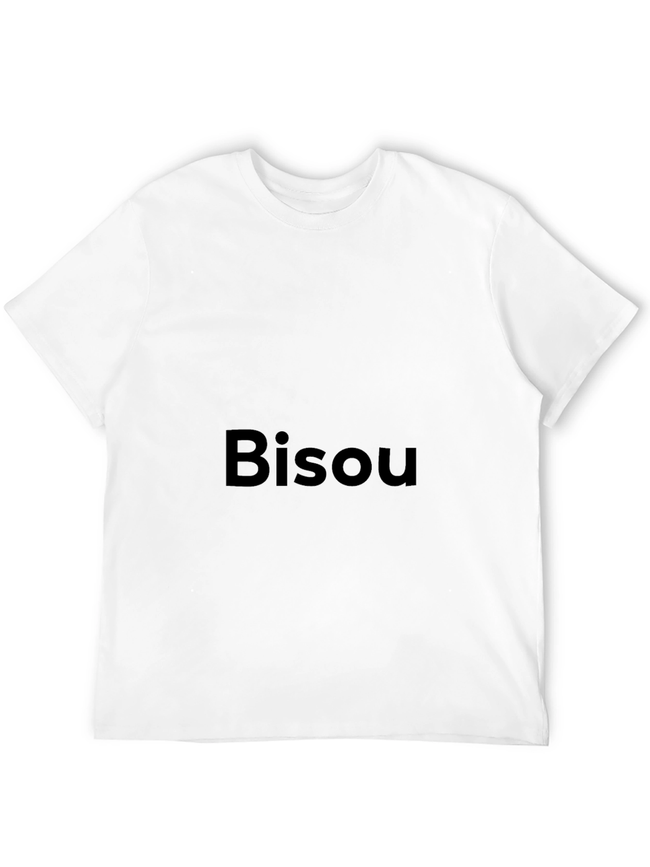 Elevate your casual style with this sleek black t-shirt featuring the word 'Bisou' across the chest. Made from soft, breathable cotton, this tee offers both comfort and style. The classic crew neck design and short sleeves make it a versatile piece for everyday wear. Pair it with jeans for a relaxed look or dress it up with a blazer for a more polished outfit. Perfect for expressing your individuality with a touch of French flair. Whether you're running errands or meeting friends, this 'Bisou' t-shirt is a must-have addition to your wardrobe.