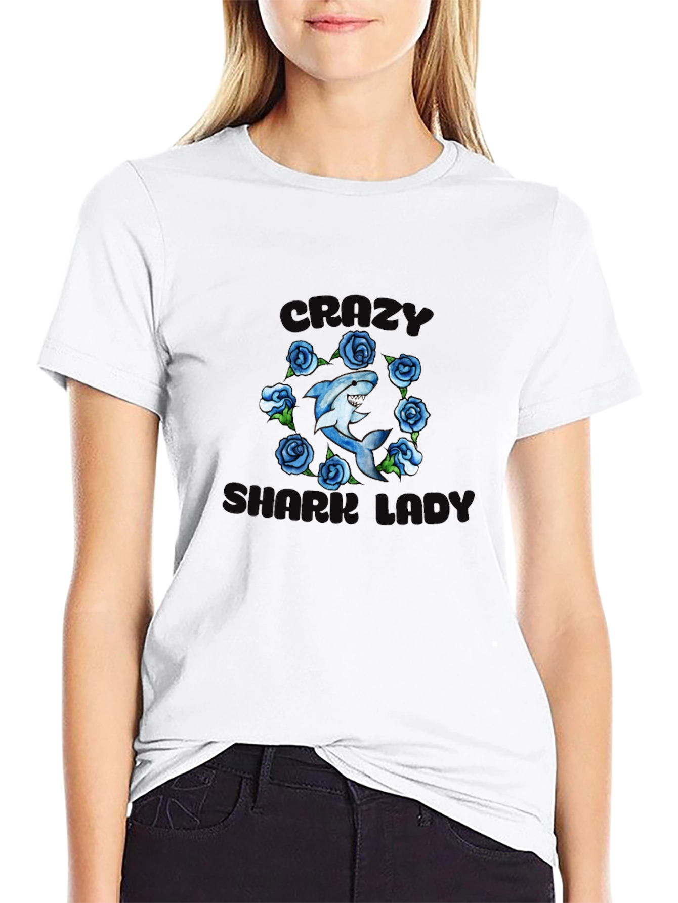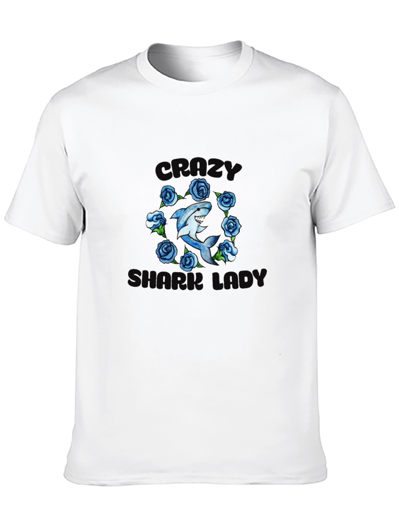 Show off your unique style with this Crazy Shark Girl T-Shirt! This eye-catching black tee features a playful shark graphic surrounded by a beautiful arrangement of blue roses. Made from a soft, comfortable fabric, this shirt is perfect for everyday wear. The vibrant design is sure to turn heads and spark conversations. Ideal for casual outings, concerts, or just lounging at home, this t-shirt lets you express your fun and quirky personality. Grab yours today and dive into style!