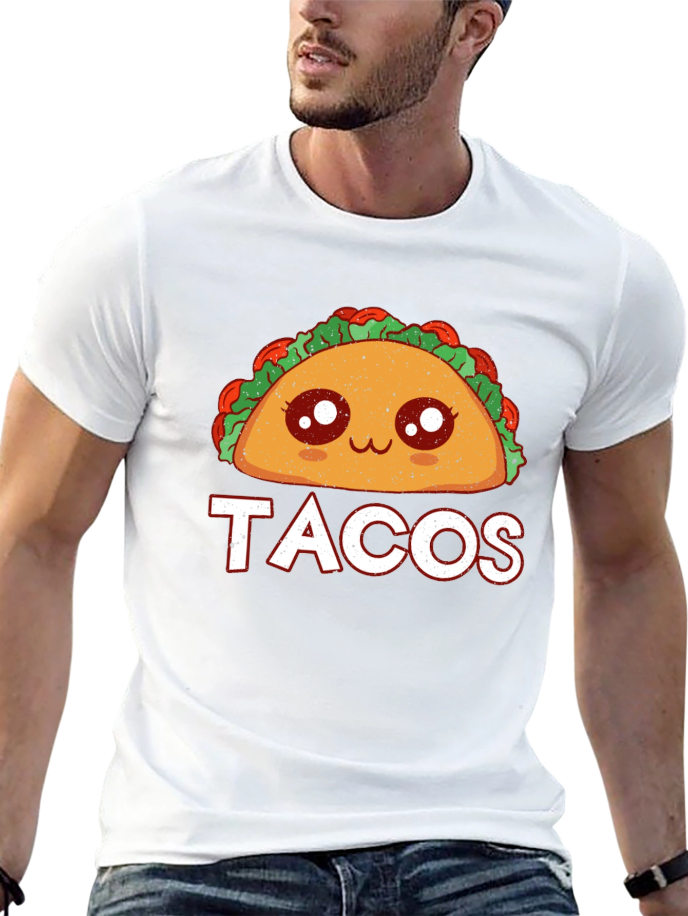 Show off your love for tacos with this adorable graphic t-shirt! This black tee features a fun, cartoon-style taco design with cute eyes and a smiling face. The word "TACOS" is printed below the graphic in bold, white lettering outlined in red. Made from a soft, comfortable fabric, this shirt is perfect for casual wear, taco nights, or showing off your foodie personality. A great gift for taco lovers, food enthusiasts, or anyone who enjoys fun, quirky apparel. Wear it with jeans, shorts, or your favorite casual bottoms for a delicious and stylish look!