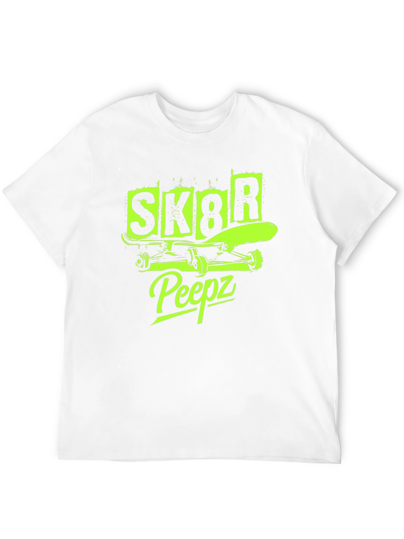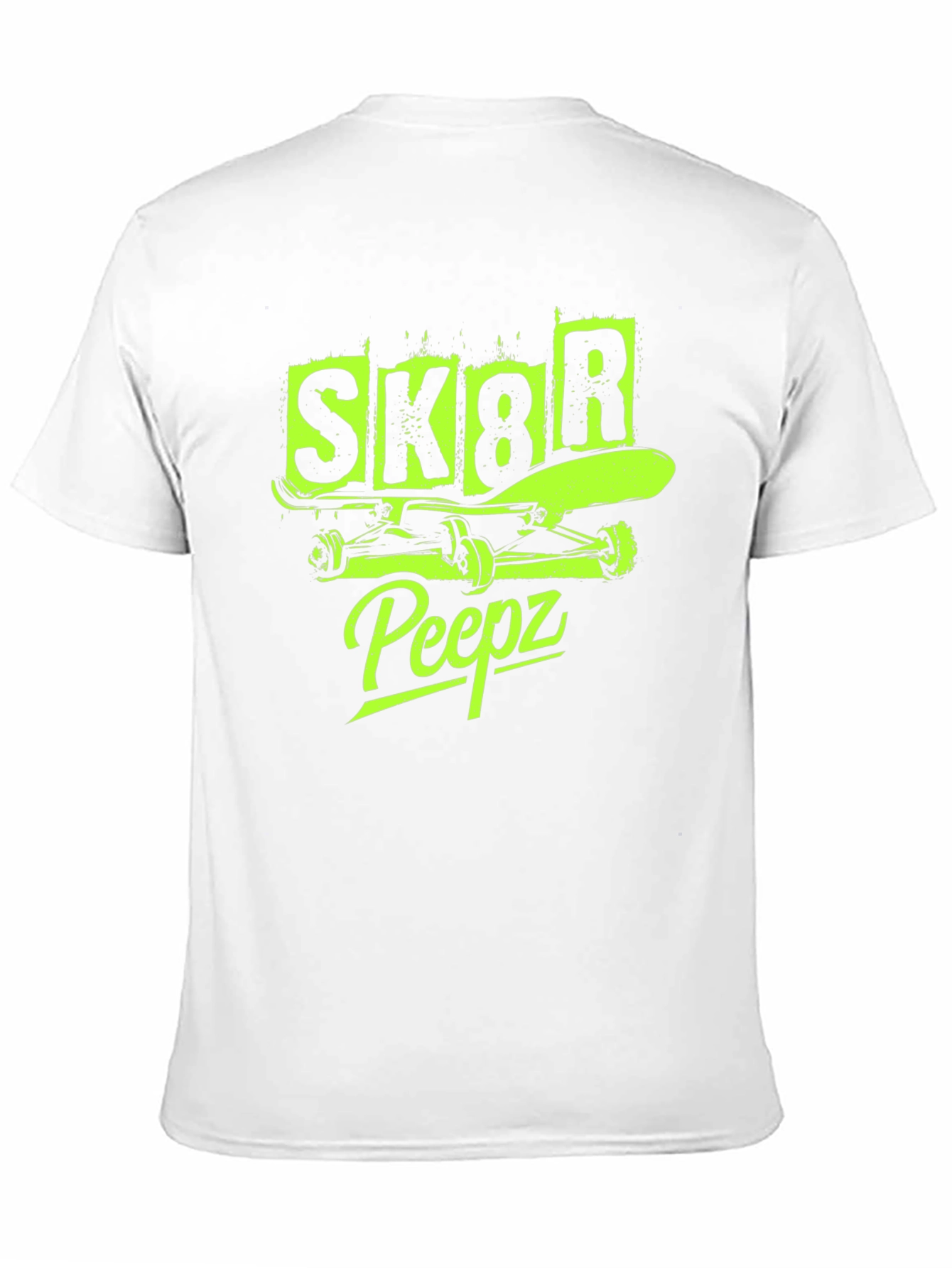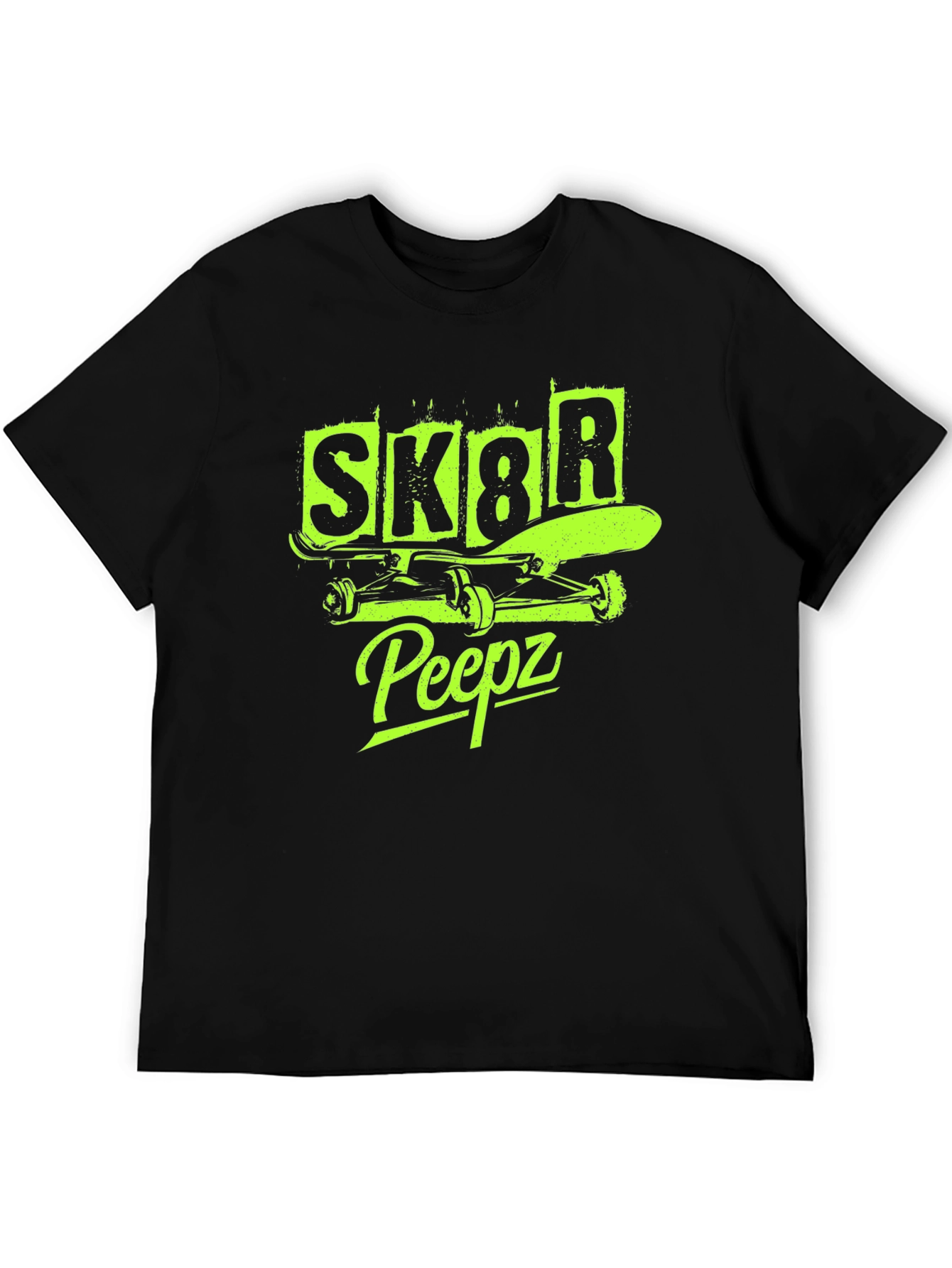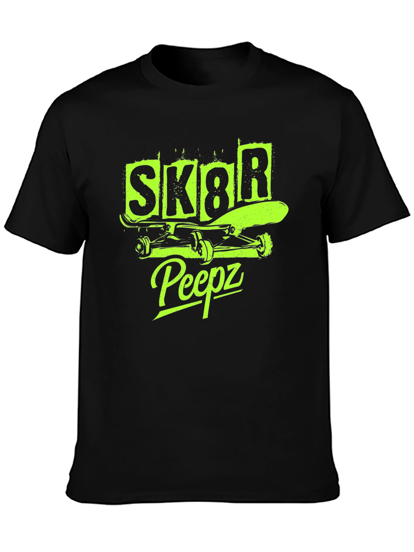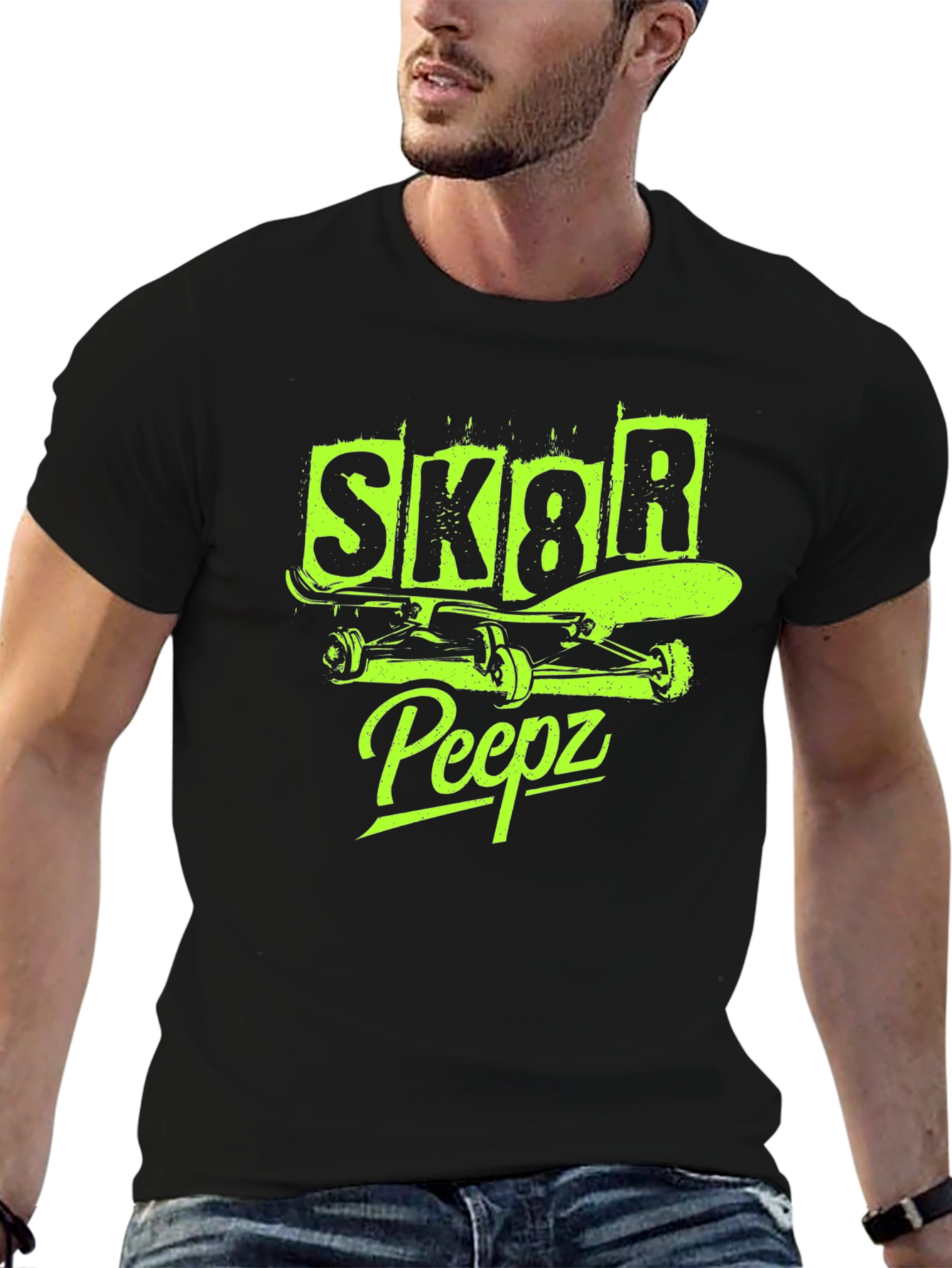 Show off your love for skateboarding with this stylish SK8R Peepz graphic tee. The black shirt features a vibrant neon green design with the words "SK8R Peepz" and a skateboard graphic. Made from a comfortable cotton blend, this tee is perfect for everyday wear, hitting the skate park, or just chilling with friends. The bold, eye-catching design will make you stand out from the crowd and express your unique style. Get yours today and rep the SK8R lifestyle!