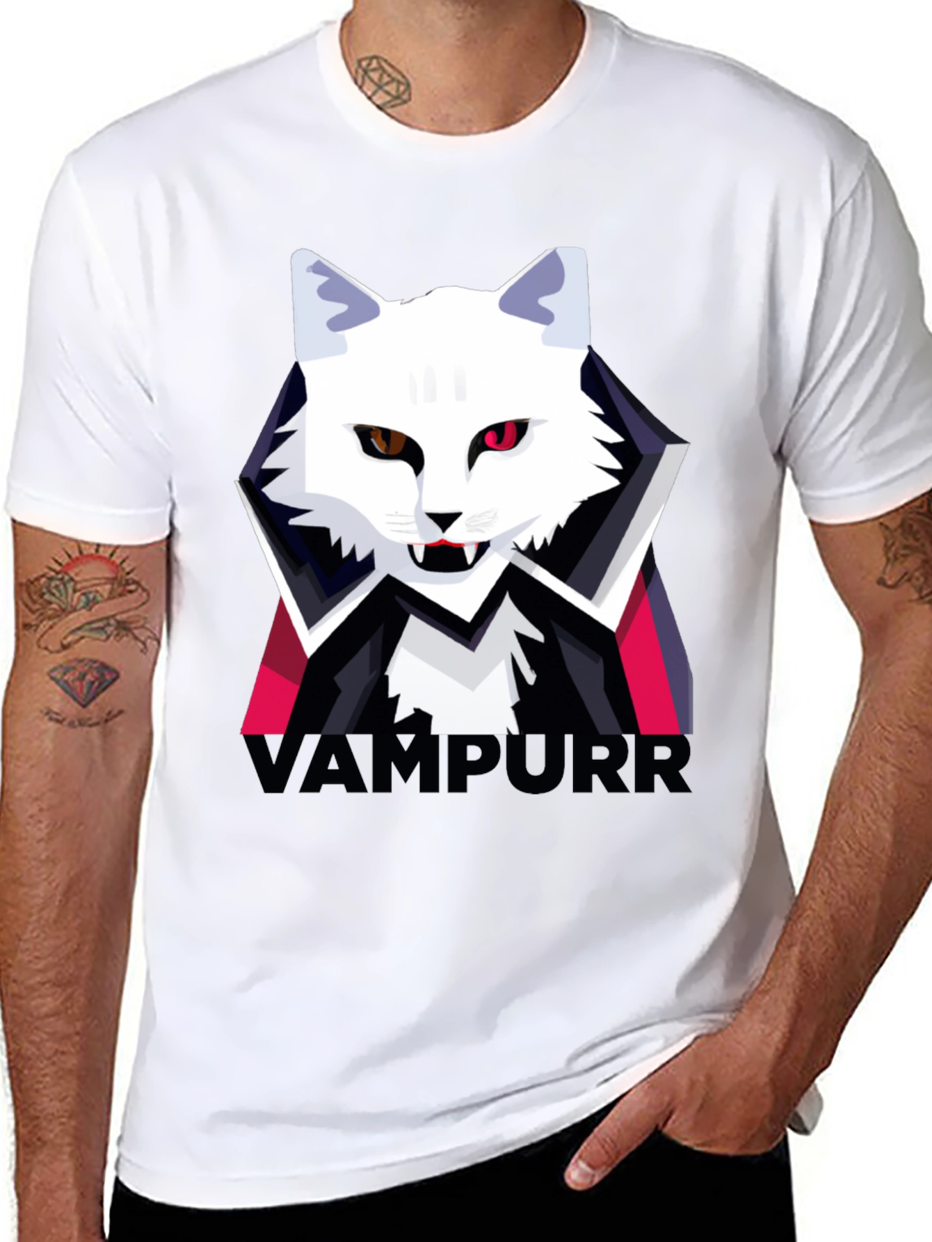 Show off your spooky style with this unique "Vampurr" T-shirt! This black tee features a bold graphic of a white cat dressed as a vampire, complete with a striking black and red cape and piercing eyes. The design is playful yet edgy, perfect for Halloween or any occasion where you want to add a touch of gothic charm to your wardrobe. Made from a comfortable, breathable fabric, this T-shirt offers a great fit and lasting wear. Stand out from the crowd with this eye-catching design!
